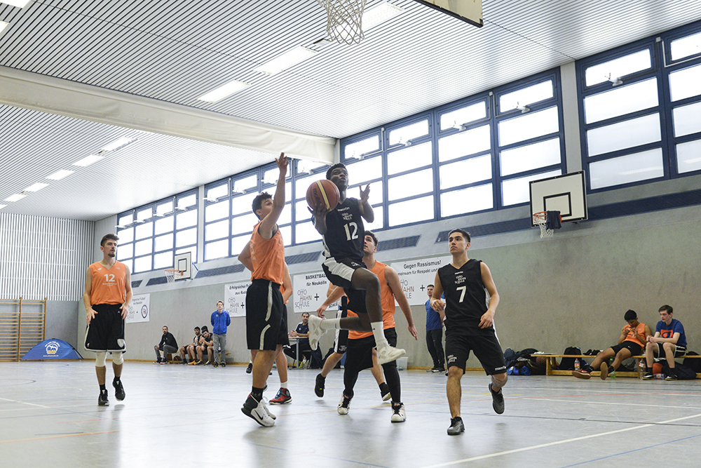 Zuvor wurde aktiv in der Sporthalle um Bälle und Punkte gekämpft. Die Otto-Hahn-Schule war der Austragungsort des ersten gemeinsamen Zwischenrundenturniers der ALBA Grund- und Oberschulliga. Fünf Neuköllner Grundschulen waren zu Gast, um ihren Meister auszuspielen. Gepfiffen wurden die Spiele von Schülern der OHS, die zuvor im ‚Kiezhelden‘ Projekt zu Schiedsrichtern ausgebildet wurden. Doch auch die Otto-Hahn-Schule trat mit einem neu formierten Schulteam an und belegte Platz 2, hinter dem Leonardo da Vinci Gymnasium aus Buckow. Der verbindende Charakter von Sport zeigte sich erneut, als beide Teams zum Schluss des Turniers noch ein Freundschaftsspiel in gemischten Mannschaften spielten.