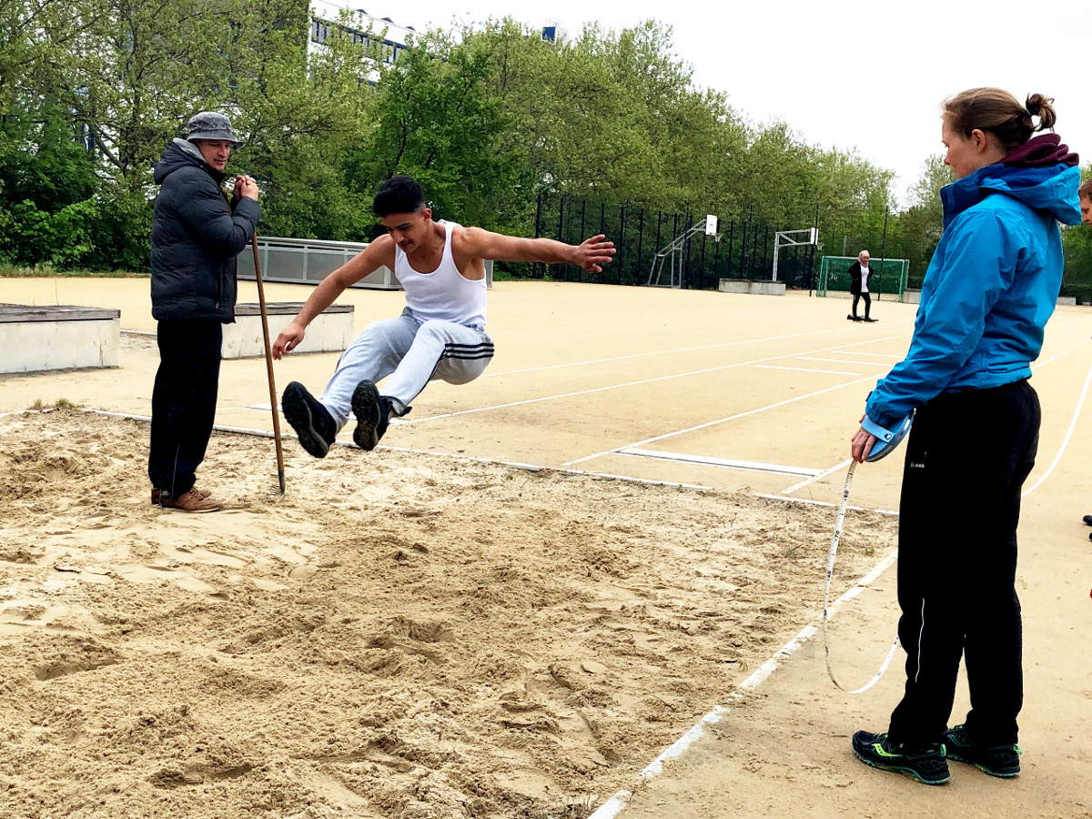 Am Montag, den 29. April fanden an der Otto-Hahn-Schule die Bundesjugendspiele 2019 statt. Bei anfangs nasskaltem Wetter traten die Schülerinnen und Schüler an, ihre besten Leistungen im Sprint, Weitsprung und Werfen zu zeigen.